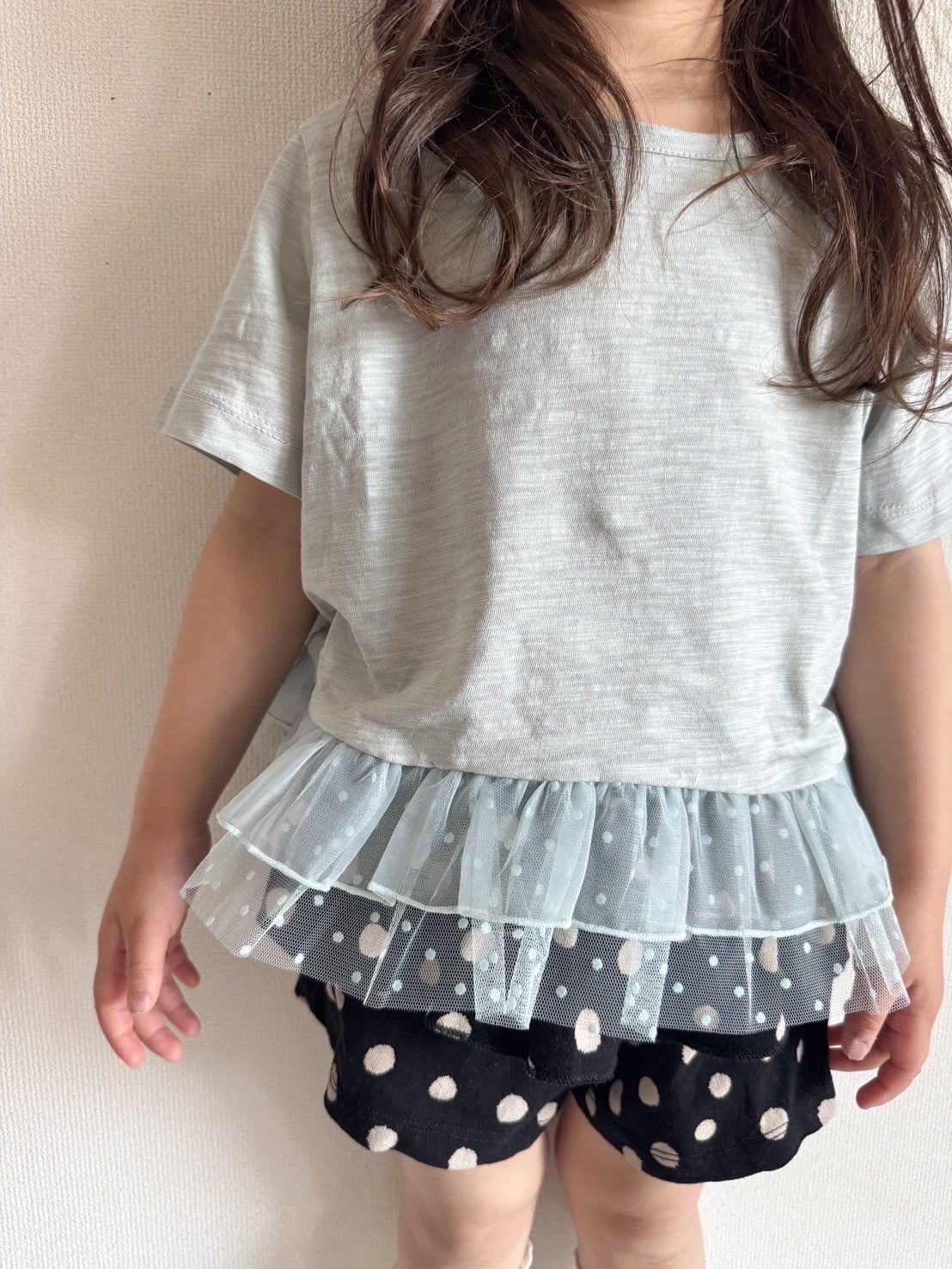 2種類の生地で仕立てた ふわっふわの2枚重ねフリルが